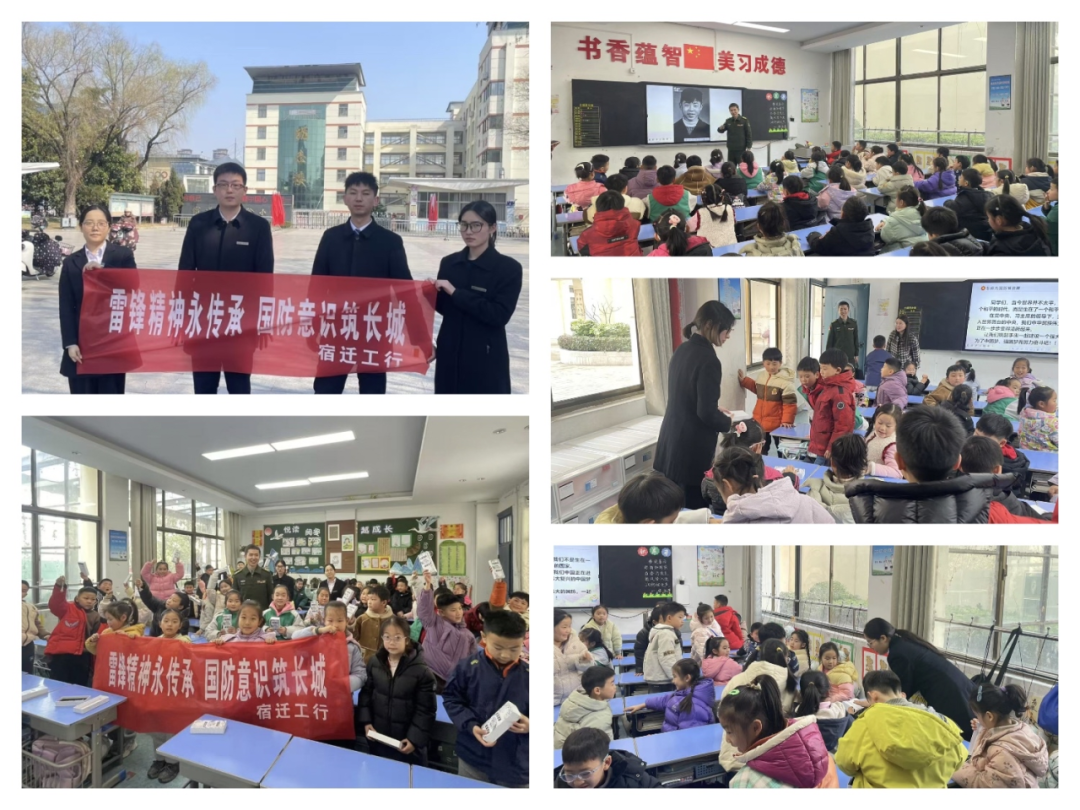 3月6日,宿迁分行营业部团支部创新联动某驻宿部队,走进宿迁市实验小学开展"雷锋精神永传承,国防意识筑长城"主题教育活动。通过"国防课堂+榜样故事"的沉浸式体验,为近百名少先队员带来一堂生动的思政实践课。活动现场,驻宿部队军官身着笔挺戎装,以图文展示、视频讲解等形式,为孩子们带来一堂生动的国防教育课。团员代表以“雷锋叔叔的一天”为主题,通过情景再现和故事讲述,带领孩子们走进雷锋的精神世界,为孩子们播下了国防意识与雷锋精神的种子,让红色基因在幼小的心灵中生根发芽。