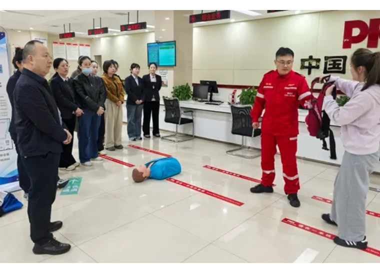 为增强员工安全防范与应急处置能力,10月21日,人保财险宿迁市分公司应急救援队针对营业大厅职场开展急救救援演练。