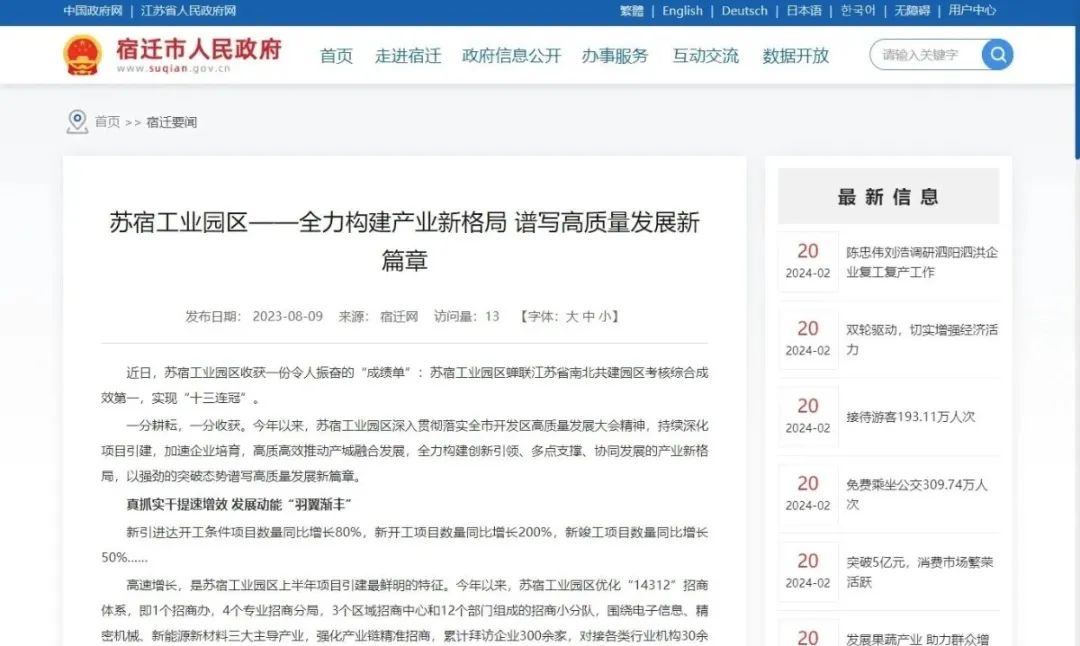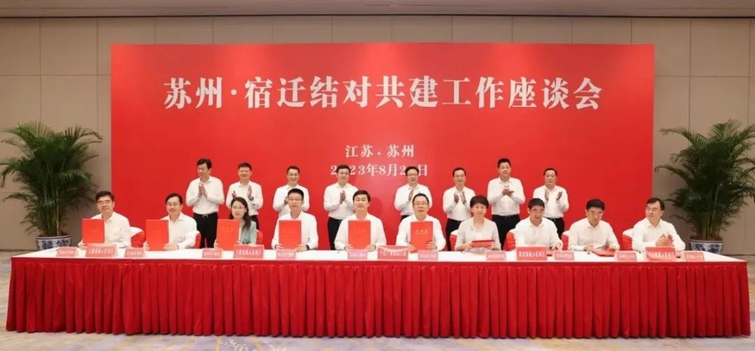 8月29日,宿迁市党政代表团赴苏州市考察,并召开苏州·宿迁结对共建工作座谈会,听取两市南北结对帮扶合作和共建园区工作情况汇报,围绕新能源、高端纺织产业协同发展以及教育、医疗卫生、人力资源、文化旅游等领域合作进行了项目签约。
