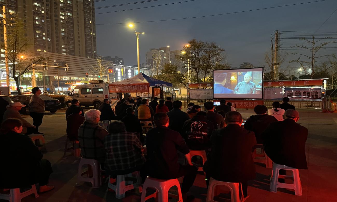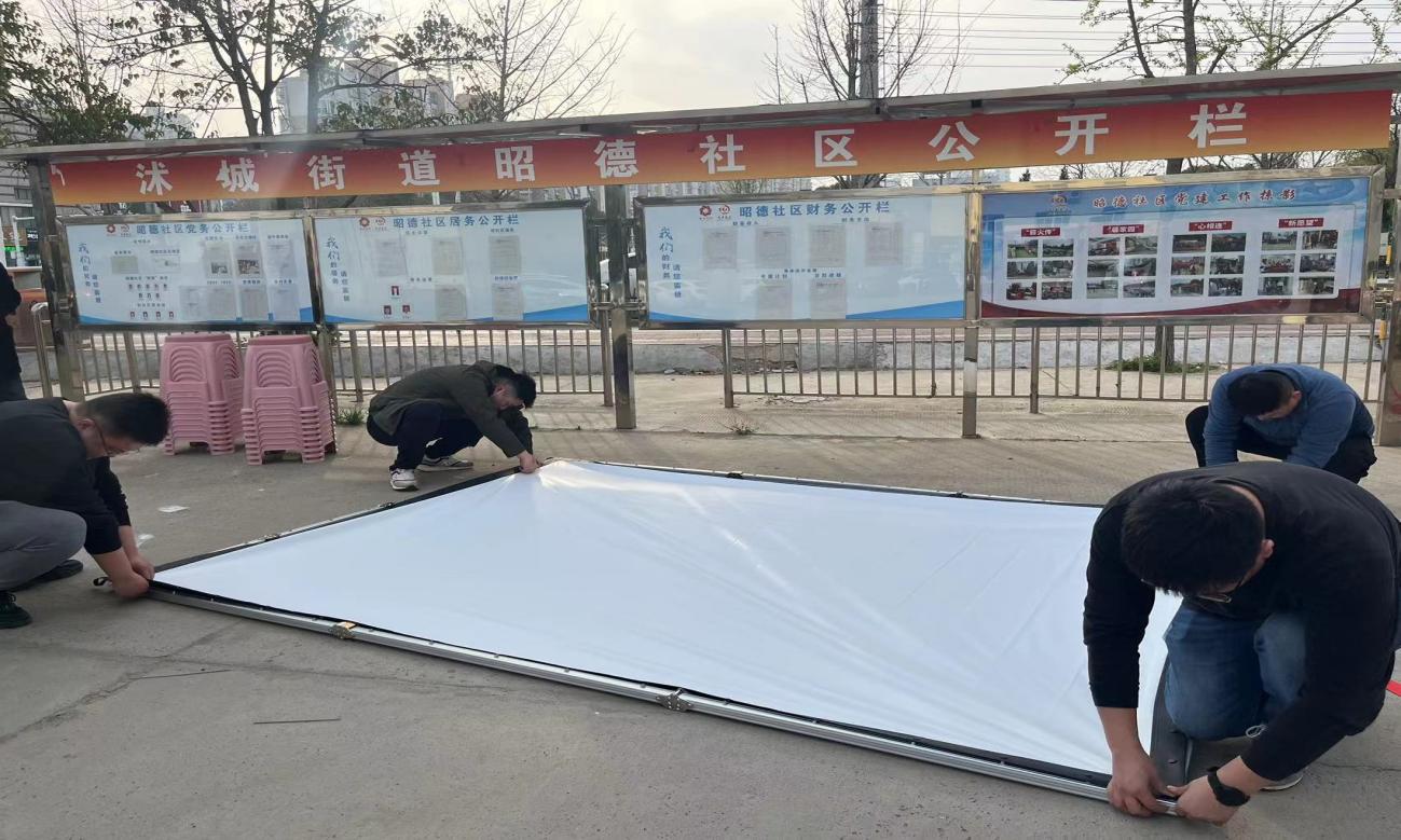 活动当天,沭阳分公司党员职工早早赶到现场,拉银幕、接音箱、调设备,提前做好电影放映准备。正式放映前,还穿插播放了多部反诈宣传片,提高居民反诈意识。
