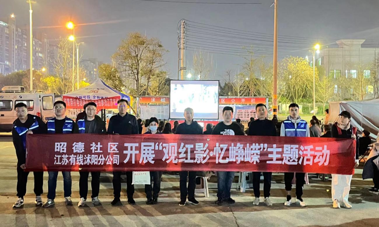 为传承红色精神,厚植爱党爱国情怀,4月1日晚上,江苏有线沭阳分公司在昭德社区党群服务中心广场开展“观红影·忆峥嵘”系列活动。