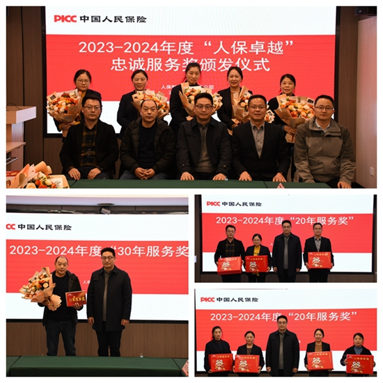 为进一步增强职工荣誉感、自豪感,表扬和褒奖投身人保事业并作出积极贡献的员工,12月31日,人保财险宿迁市分公司工会办举行了2023-2024年度“人保卓越”忠诚服务奖颁发仪式。市分公司工会主席出席会议并颁奖。
