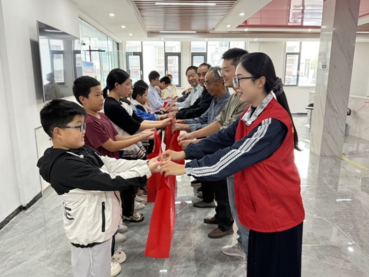 活动的最后,“爱心赠礼”环节传递着温暖与关怀。党员代表将装有文具、水杯等物品的“成长助力包”送到困境儿童手中,并鼓励他们要好好学习、勇敢追梦。接过沉甸甸的助力包,孩子们纷纷表示,会将这份关爱转化为动力,长大后为祖国建设贡献力量。