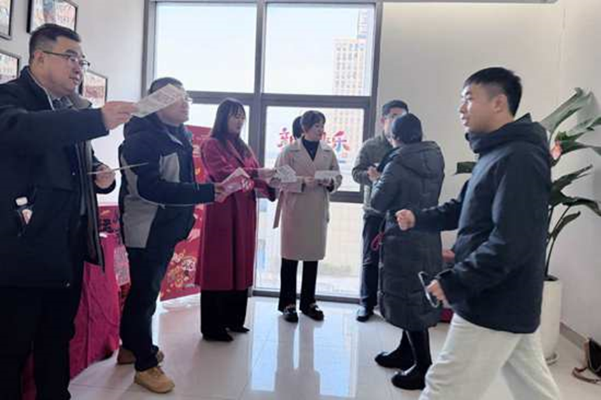 随后,公司为员工们准备了充满惊喜的抽奖仪式,寓意着新的一年红红火火、好运连连。员工们脸上洋溢着喜悦的笑容,纷纷表示将以更加昂扬的斗志投入到工作中,为实现个人和公司的目标而努力奋斗。