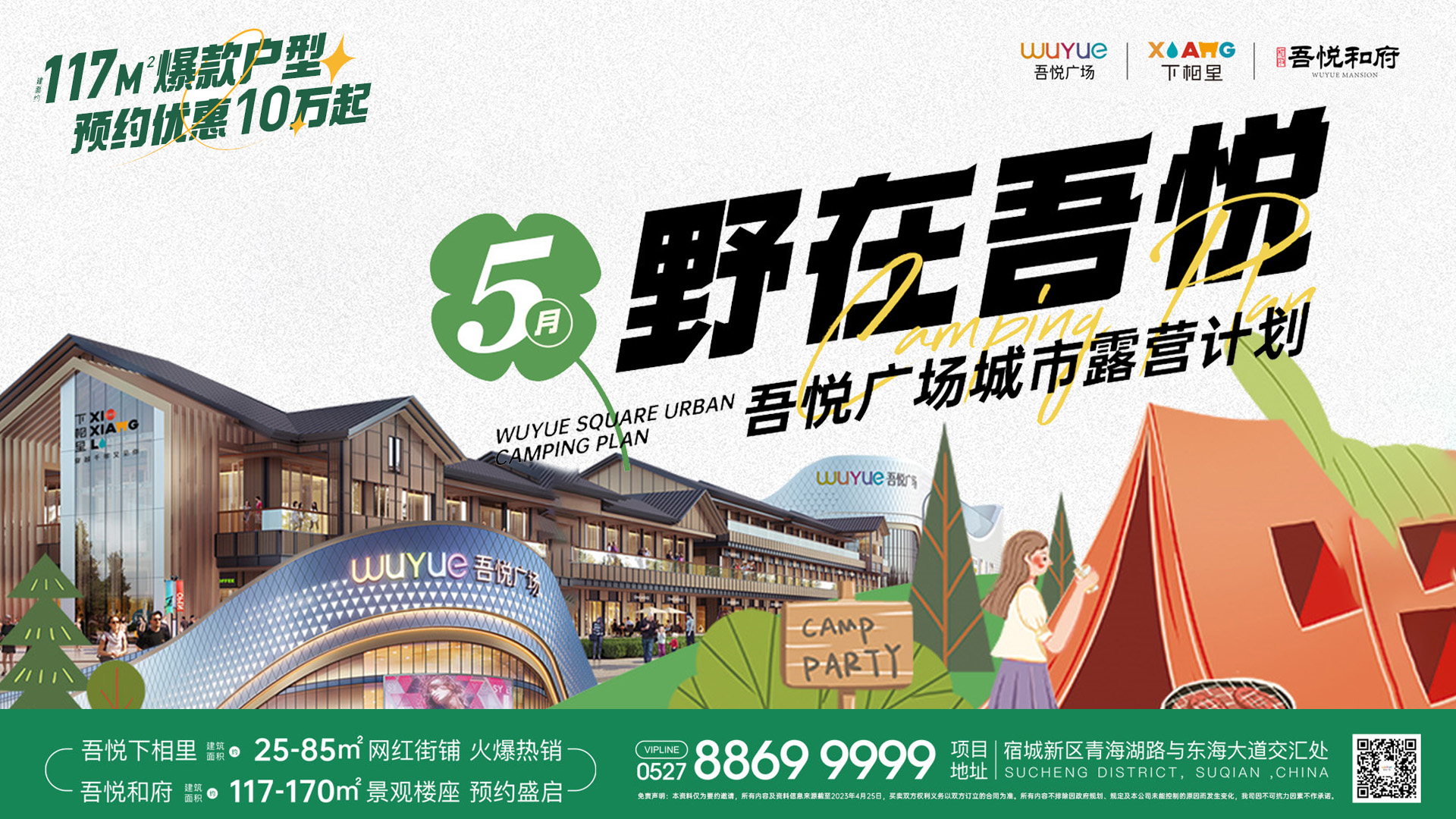 5月,「野」在吾悦!五一城市露营节,花式躺平区邀您一起来读书、创意生态鱼缸手作、特色泰式美食、吾悦图书市集、竞技游戏区等,拥抱这个春天,嗨翻五一假期!