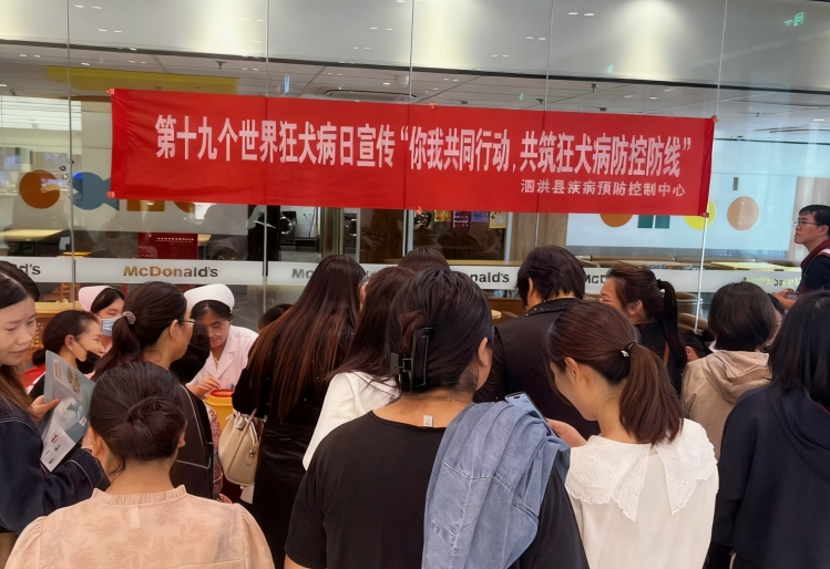9月28日是第19个“世界狂犬病日”,今年的宣传主题是: “你我共同行动 共筑狂犬病防控防线”。为进一步宣传普及狂犬病防治知识,营造良好社会氛围,动员全社会行动起来预防和控制狂犬病,9月份以来,泗洪县疾控中心联合部分医疗卫生机构在全县范围内开展了形式多样的狂犬病防控知识宣传活动,旨在让广大市民“面对面”学习知识、掌握技能,将“主动预防、科学处置”的理念转化为自觉行动,共筑狂犬病免疫屏障。