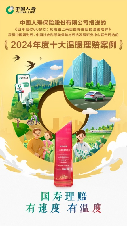 近日,“2024年度十大温暖理赔案例”发布,其中,中国人寿保险股份有限公司(以下简称“中国人寿寿险公司”)的《四年赔付60余次:抗癌路上的国寿理赔温暖相伴》成功入选。