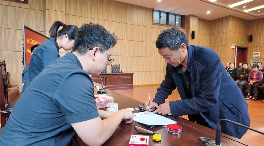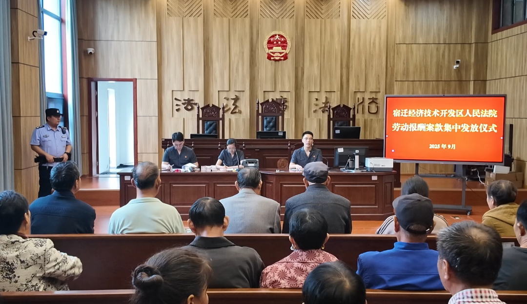 9月28日上午,宿迁经济技术开发区人民法院洋河法庭举办了一场劳动报酬案款集中发放仪式,61名当地群众领到了拖欠已久的劳动报酬。