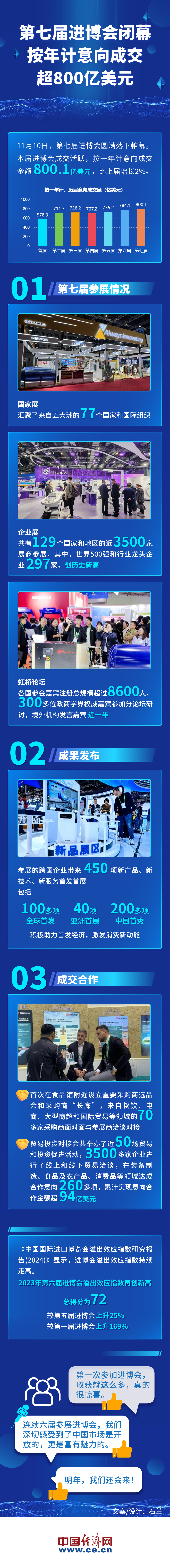 【图解】第七届进博会闭幕 按年计意向成交超800亿美元