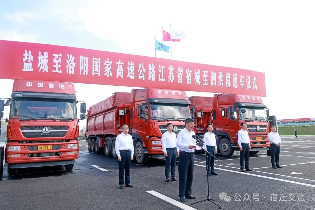 9月20日上午,盐城至洛阳国家高速公路宿城至泗洪段通车仪式在泗洪服务区举行,标志着该项目顺利建成通车。宿迁市委副书记、市长刘浩,省交通运输厅党组成员、省交建局局长宋国森,省交通控股有限公司党委委员、副总经理孙悉斌,宿迁市委常委、副市长章其波等领导出席通车仪式。