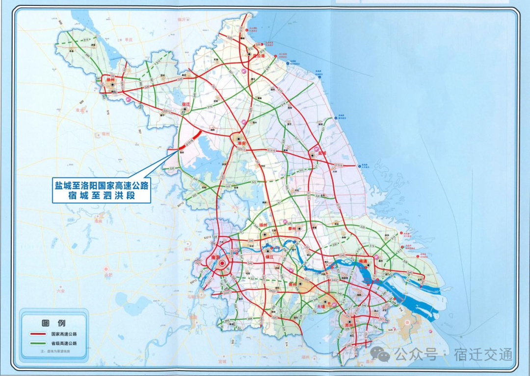项目于2021年12月开工建设,2024年9月建成通车。全线共有15座桥梁,含3座特大桥(洪泽湖湿地特大桥、洪泽湖滞洪区特大桥及泗洪经济技术开发区特大桥),总长度达到20.1公里,桥梁比例高达52.6%。沿线在宿迁市域与淮徐高速公路、新扬高速公路交会,同时连接268省道、451乡道屠界线及泗洪县东南大道,沿线城镇居民可通过这条高速串联的淮徐高速、新扬高速与全国高速网实现互联互通,直达省内外大部分城市。