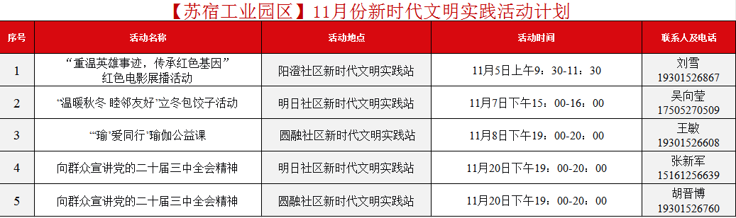 苏宿工业园区11月份新时代文明实践活动计划新鲜出炉,请查收~
