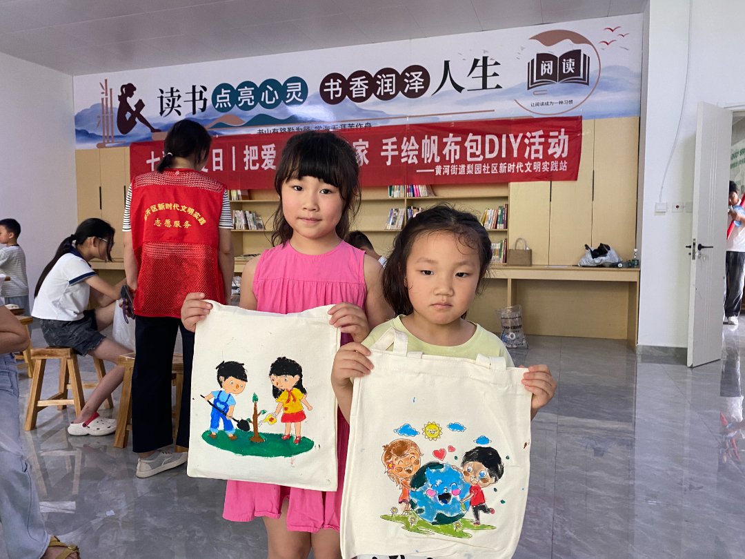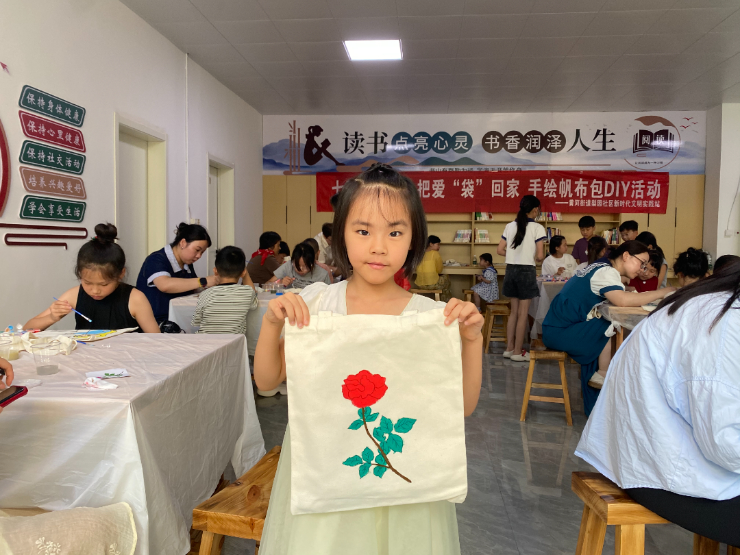 为了丰富辖区青少年的暑假生活,黄河街道梨园社区新时代文明实践站“童心七彩绘”品牌活动再添新亮点,7月11日,一场别开生面的“把爱‘袋’回家”手绘帆布包DIY活动在金樾府小区开展,活动通过手绘环保袋的方式,增强孩子们环保意识,同时激发大家的创造力和艺术才能。