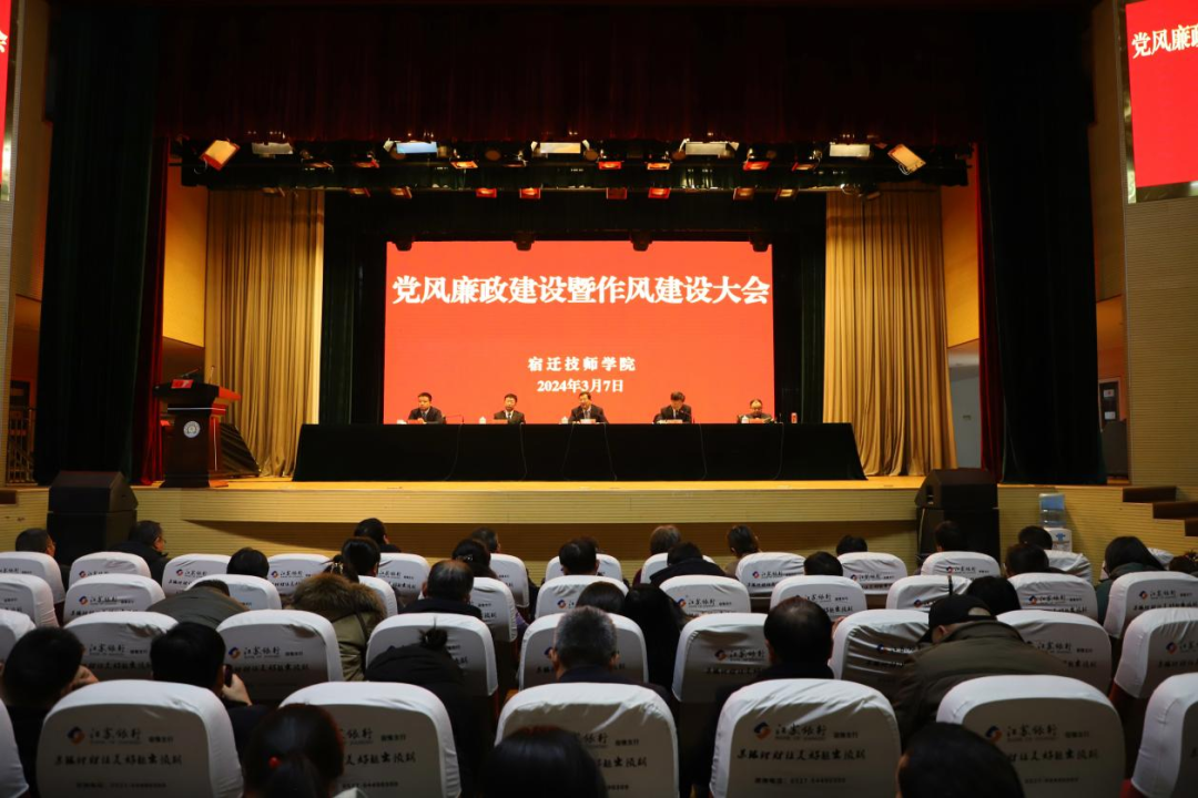 3月7日,宿迁技师学院党风廉政建设暨作风建设大会在艺术楼报告厅召开。学院党委书记、院长张兵营出席会议并讲话。院领导胡德斌、林远、池华祥、周翔宇出席会议。学院党政群各部门主要负责人,全体教职工参加会议。会议由党委委员、副院长胡德斌主持。