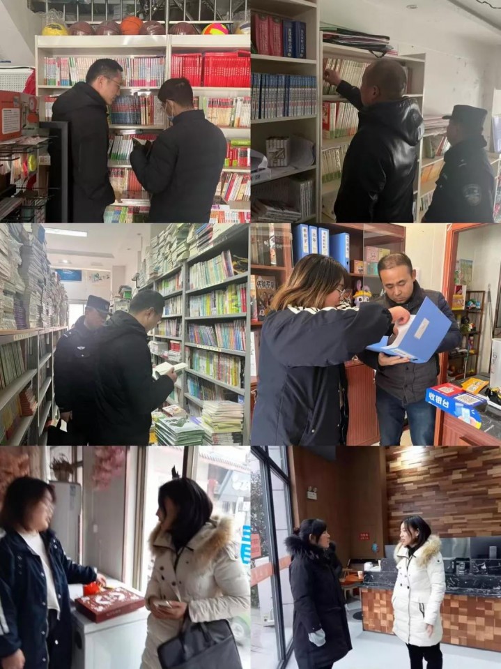 为进一步净化校园周边文化环境,遏制有害出版物在校园周边传播,营造文明和谐的社会风气,1月14日,洋河新区“扫黄打非”办组织公安分局、综合行政执法局、生态旅游产业园区管理办公室、教育领导办公室、洋河办事处等相关职能部门,对辖区内部分校园周边书店、文具店、“剧本杀”游戏场所进行“扫黄打非”专项检查。