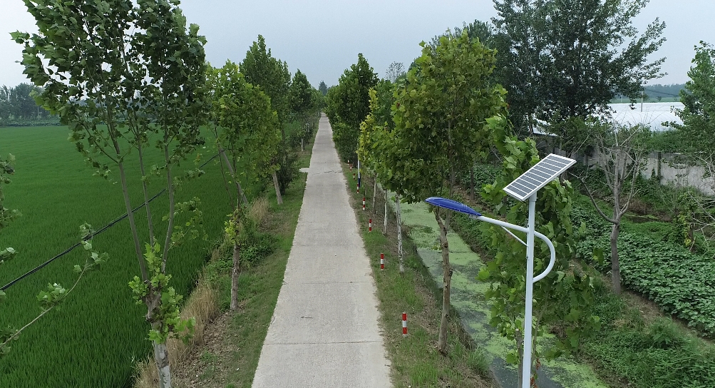 除了道路修缮,这次的“一事一议”项目建设我们村还新增了80盏太阳能路灯,以前这条路只有微弱的灯光,现在装了这些路灯,老百姓晚饭后散步、晚上下班回来亮堂堂,心里踏实多了,安全感可是实实在在提升了!