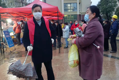 一老一小是爷孙两人,老的叫郑干,现年65岁,从沭阳县交通系统退休以后,积极发挥余热,主动参与社区、小区的各项有益志愿活动,被小区广大业主推荐为楼栋长、业主委员会主任。在疫情防控过程中,他主动报名成为一名年龄最大的疫情防控志愿者。在核酸检测现场,他身穿红马夹冒雨坚守在秩序维护员的岗位上。从宣传发动、1米线点位把控到人员疏散,每个环节都可以看到他的身影。由于他长时间在雨中穿梭维护秩序,到晚上8点检测工作结束时,他从头到脚全部被雨水淋透了。