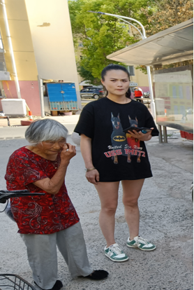 当天下午5点35分,沭阳县沭城街道叶庄社区党群服务中心来了一位老太太。老人今年已经80岁了,住十字街道张圩村。因家庭琐事离家出走,老人走到胡集镇华集村境内(原205国道)路边时来回徘徊,满脸愁容,显得很无助。此情此景,被从胡集到沭阳上班的26岁年轻姑娘胡婷发现,胡婷随即停车详细询问老太太的情况。老太太在35度的高温上气不接下气说:“今天端午节,因家庭琐事想到大女儿孙美荣过一天。从村里走到大路边,实在走不动了,又不便返回家中。我现在只知道大女儿家住沭阳美好家园,却不知道她家具体楼栋单元。”胡婷了解情况后,开专车把老太太陈玉兰送到美好家园小区(叶庄社区党群服务中心)。