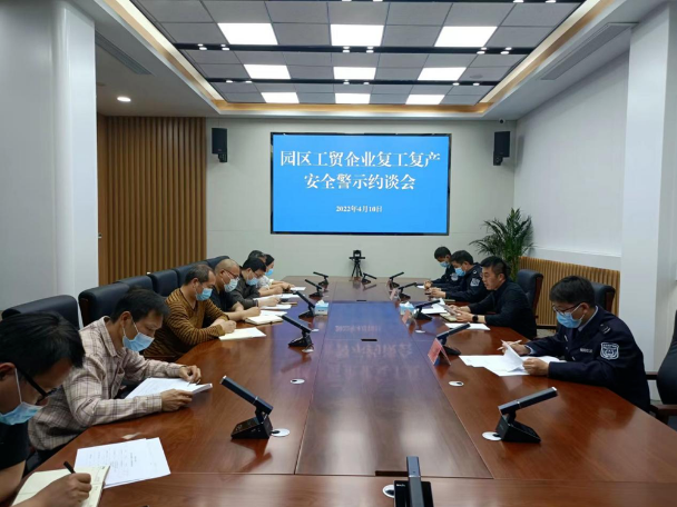 4月10日下午,园区安监局组织召开工贸企业复工复产安全生产警示约谈会。