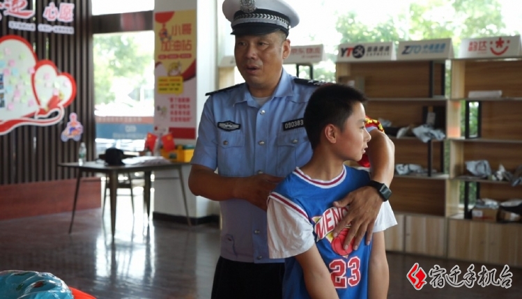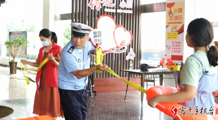 下午2点,在洋河新区“车手微家 暖新驿站”内,宿迁市交警支队五大队的汪警官正在为孩子们授课,通过宣传防溺水知识、救生道具的使用方法及亲身体验实践,让孩子们明白溺水的危险性以及突发情况下如何进行自我保护。