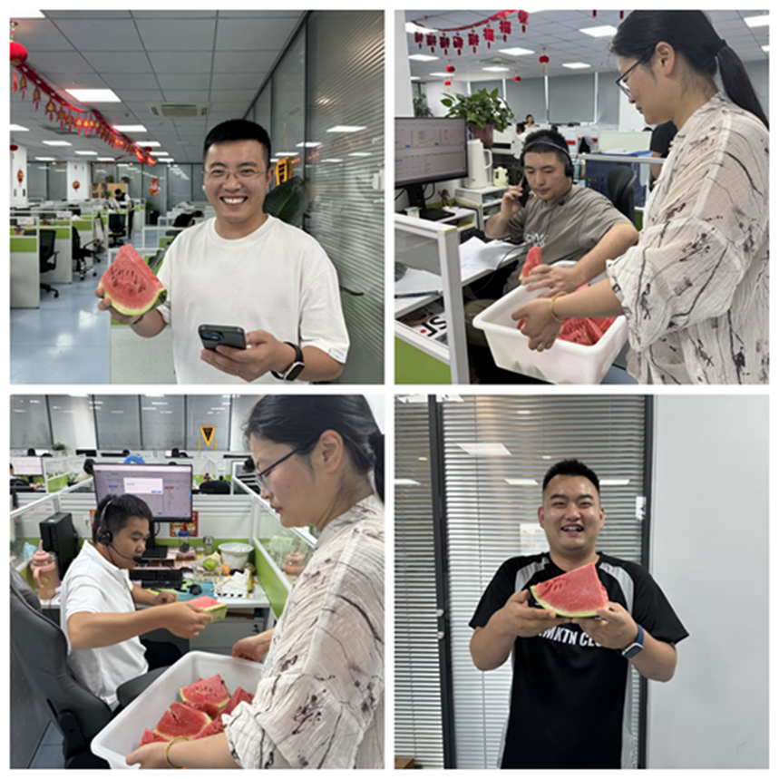 此外,电商部还贴心准备了“啃秋”西瓜,寓意着在丰收的季节里,大家都能“啃”下难题,收获满满。愿这清甜的西瓜能激发全体员工无限的斗志与创造力,面对市场的风云变幻,电商部将以更加专业的姿态,深厚的学识,灵活应对,确保各项考核任务圆满达成。