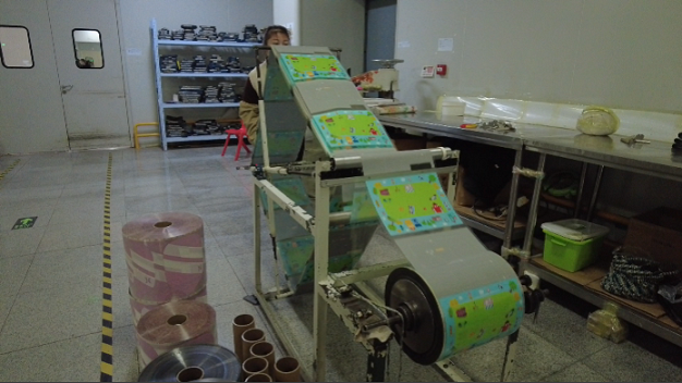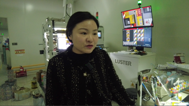 我们主要是成膜过来,就检验图案上有没有残缺的,(有的话)就拿掉,检验完了,就流入下一道工序,分切的部分了。