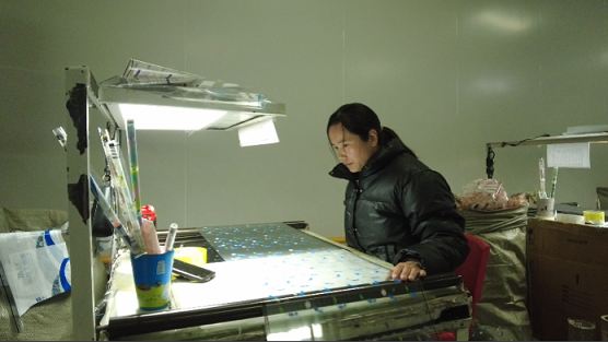 移步至质检车间,几位工人正在专业设备前全神贯注地忙碌着,严格把控质量关,确保流向市场的每一张印花膜都品质上乘。