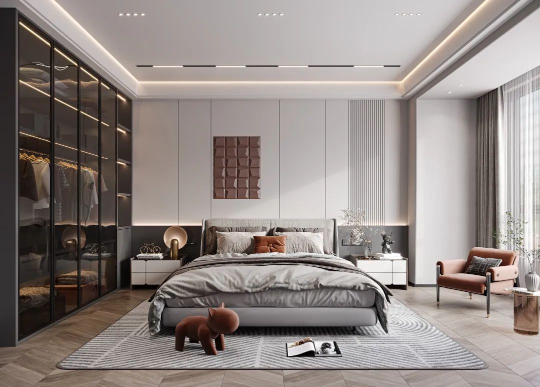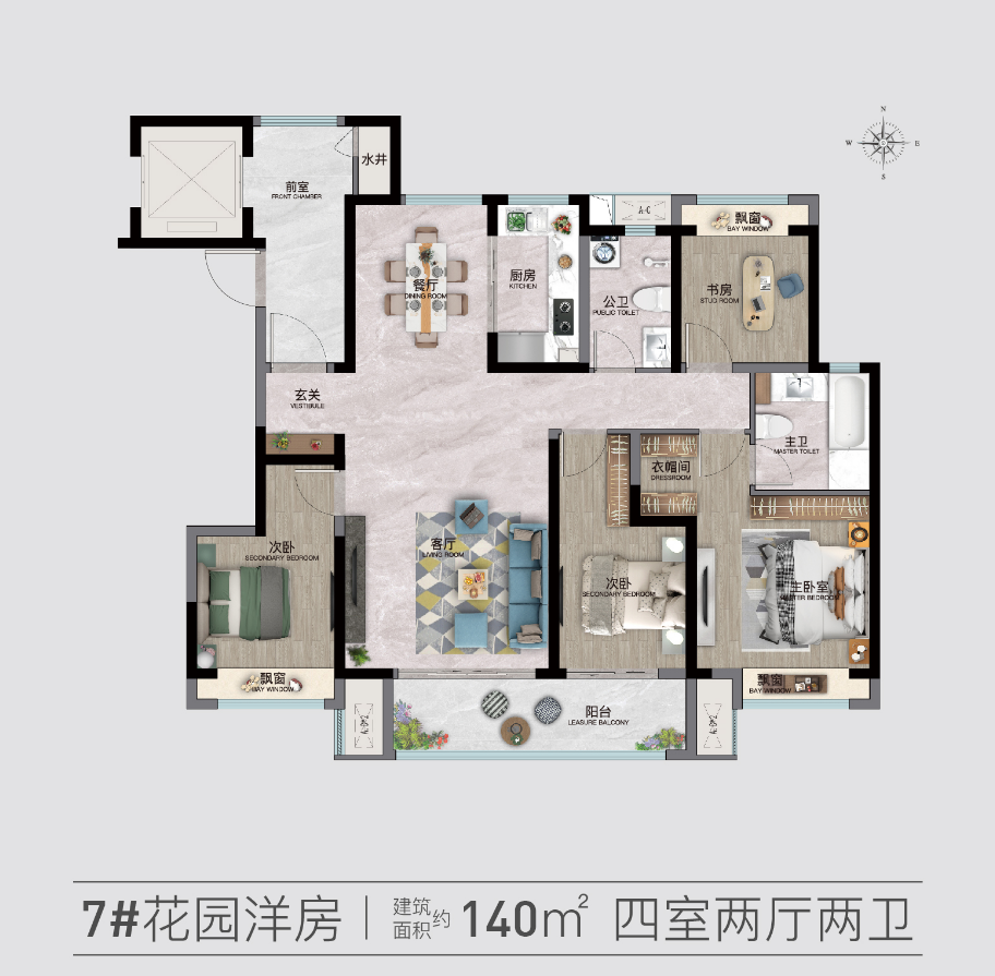 约6.9米南向双联阔景阳台,可莳花弄草,亦可品茗瑜伽。配置独立卫浴、衣帽间和观景飘窗的多功能套房主卧,清风徐来,阳光鲜氧争相入室,起居之间领略从清晨到日暮的致美园境,生活的诗情画意亦于此还原。