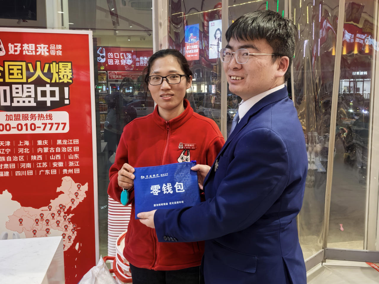 为保障商家的零钱备付需求,交通银行宿迁洋河支行工作人员配备了充足的零钱包,金额从200元到2000元不等,带到宣传现场为商家现场提供兑换,确保商家零钱准备充足,不会因为无法找零拒人民币。