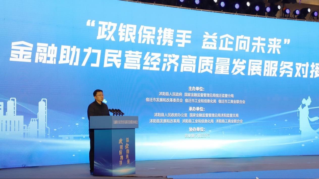 为深入学习贯彻习近平总书记在全国“两会”期间的重要讲话和全国“两会”精神,落实全国民营企业座谈会部署要求,进一步深化政银保企合作,助力民营经济高质量发展。3月18日上午,由沭阳县人民政府、宿迁金融监管分局、市发展改革委、市工信局、市工商业联合会共同主办的“政银保携手 益企向未来”金融助力民营经济高质量发展服务对接会在沭阳召开。宿迁金融监管分局党委书记、局长滕宏超,沭阳县委副书记、县长王瑞出席会议并致辞。市县相关单位负责同志,部分金融机构主要负责同志,部分商会、产业协会和民营企业代表参加会议。