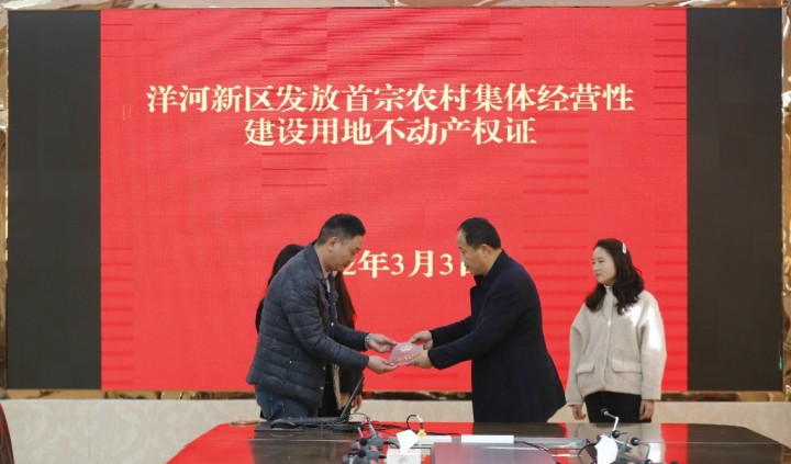 经过公示,3月3日下午,市洋河新区发放首宗农村集体经营性建设用地不动产权证,标志着市洋河新区农村集体经营性建设用地入市试点工作从“理论”真正转入“实践”阶段。