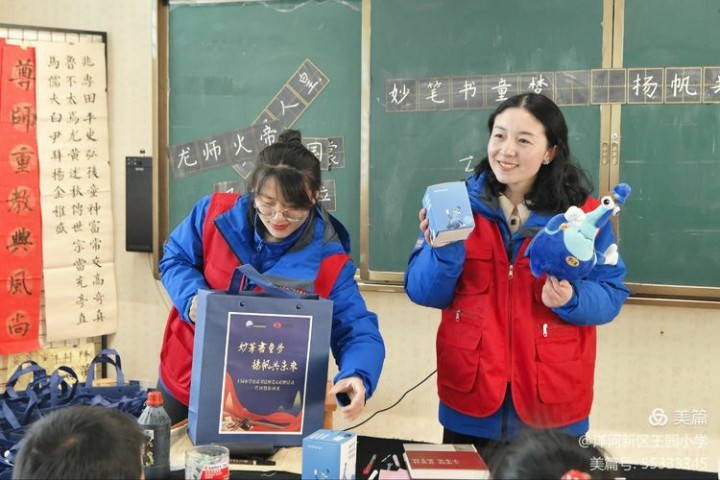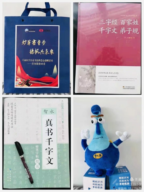 课程结束后,洋河股份团委陈美娟科长一行为50名孩子赠送了洋河超人、梦想盲盒、千字文、字帖、秀丽笔等文化大礼包,详细阐述了“妙笔书童梦·扬帆共未来”主题中所蕴含的殷殷期待,希望他们学好中国字、做好中国人、共筑中国梦,一起奔赴最灿烂的未来。