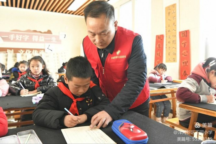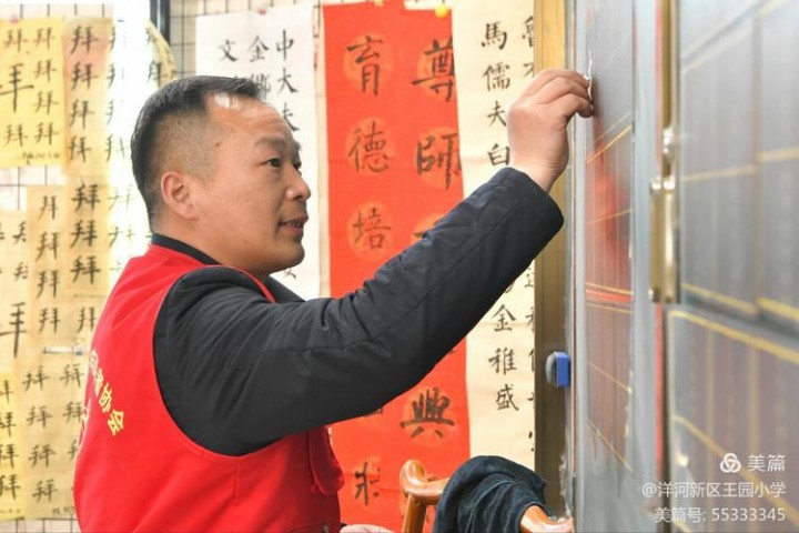 据了解,王园小学硬笔书法社团由江苏省书法家协会会员、洋河酒厂成品部消防安全员、民进洋河文艺支部副主委刘传雷于2018年筹备创建,他用实践行动扎根学校,用翰墨温暖留守儿童的心田。4年来,他坚持每周放弃午休时间,到学校开展1小时的公益书法培训,培养了近百名青少年,在市、区级各类书法比赛活动中屡获佳绩。