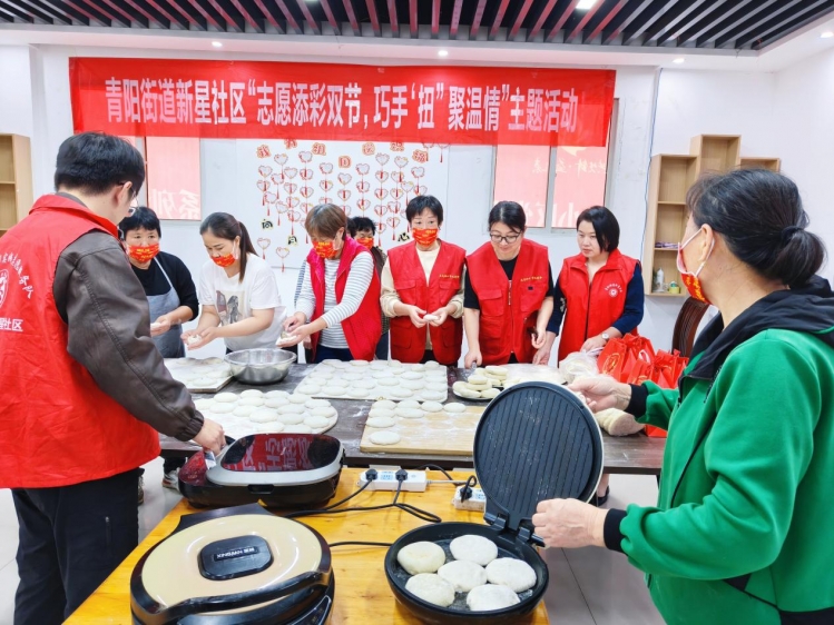 为弘扬志愿服务精神,传递社区温暖关怀,丰富居民文化生活,值此中秋、国庆双节来临之际,青阳街道新星社区组织开展“志愿添彩双节,巧手‘扭’聚温情”主题志愿服务活动,通过手工教学、传统美食制作与走访慰问等形式,为辖区居民特别是困难家庭与孤寡老人送上节日的问候与陪伴。