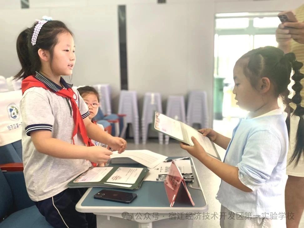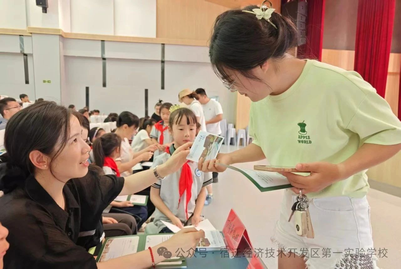 活动伊始,家长与孩子们一同前往通知书发放处,领取属于自己的录取通知书,并加入暑期临时班级群。期间,少先队员们主动协助老师引导和发放,成为现场一道亮眼的风景线。