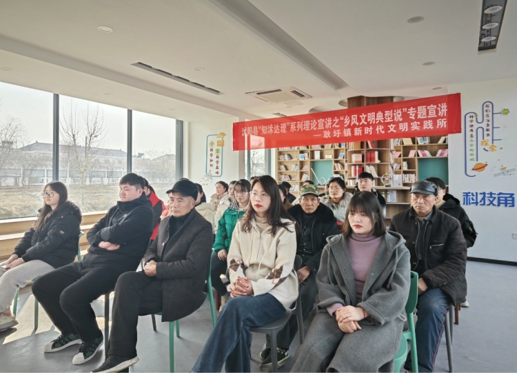 2月28日下午,淮西村农家书屋里传来响亮的宣讲声,“知沭达理”系列理论宣讲之“乡风文明典型说”专题宣讲活动正在这里举行。耿圩镇党委宣传委员李俊丽面向四十余名听众宣讲习近平总书记关于精神文明建设的重要论述,希望大家积极传播真善美,传递正能量,争做道德典型,弘扬文明之风。