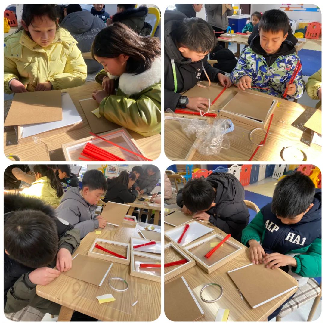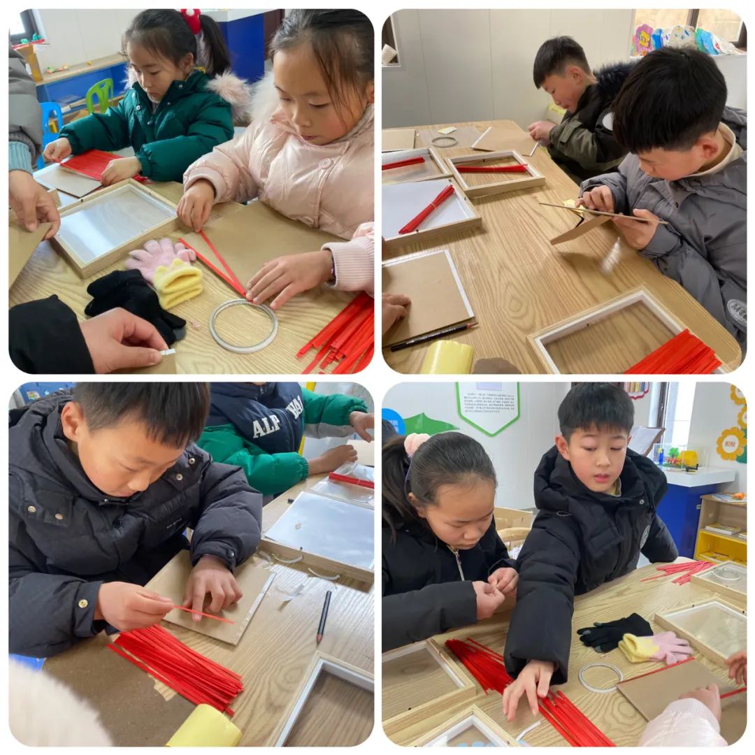 猜谜结束,活动现场又继续开展了非遗手工竹编画制作活动。活动现场,在场工作人员首先介绍了竹编的来源和竹编历史,并详细地讲解编织步骤及注意事项。听完志愿者老师的讲解后,大家对竹编工艺有了一定的了解。随后,小朋友们纷纷动手尝试,认真地进行竹编画的制作。“你看,我的竹编画快完成了,我变出了一个福字。”几个小朋友互相讨论地说道。经过大家用心地编织和设计,一幅幅精美地竹编画完成了,小朋友的脸上都洋溢着成功的喜悦。