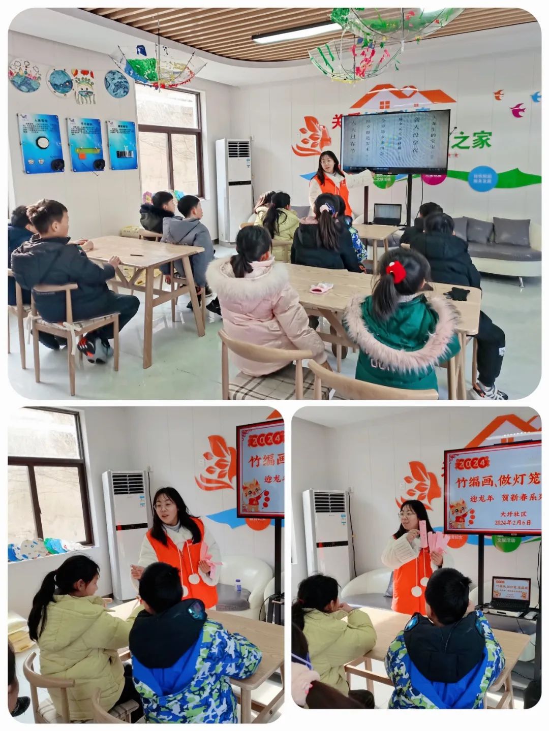 2024年2月6日,大圩社区新时代文明实践站里热热闹闹,为社区居民和孩子们送来了“书书福福过大年”迎龙年写春联、“新春谜语大家猜” “竹编画 贺新春 迎新春” “赏年画 过大年” “情暖新春送温暖”等5项活动。