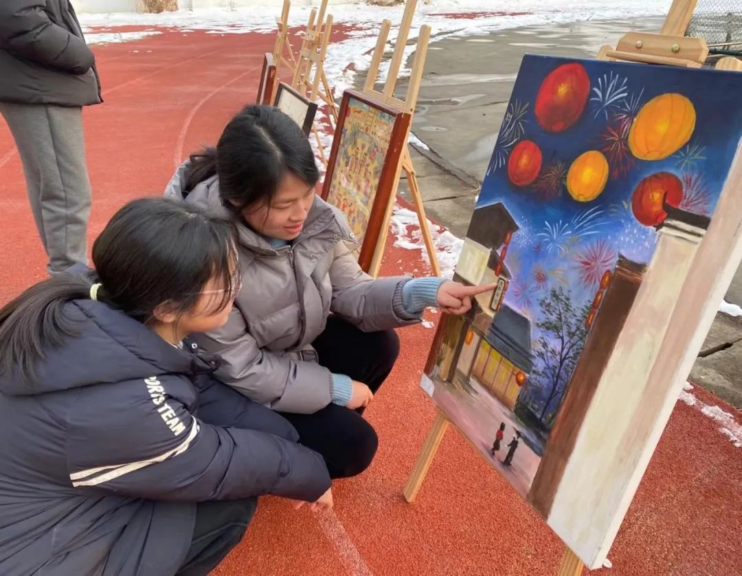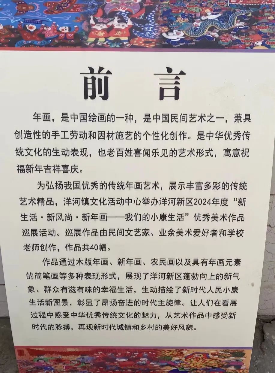 大圩社区以年画艺术激活传统节日文化内涵,营造文明祥和的节庆氛围,开展“赏年画 过大年”活动。社区走廊和操场上摆放的一张张色彩鲜艳、风格独特的年画为活动增添了浓浓的年味,吸引了不少居民和小朋友观赏。 “你看这些五颜六色的年画真好看!",稚嫩又欢快的声音此起彼伏。