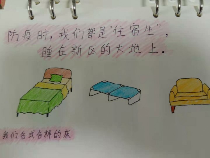 “平常时我们是‘走读生’,往返新区上班;防疫时,我们都是‘住宿生’,住在新区的大地上。”连日来,宿迁市洋河新区700多名机关党员干部和工作人员变身疫情防控志愿者,主动下沉防疫一线,蔡柳就是其中一员,她在闲暇时间用手中的画笔记录下了疫情防控过程中的所见所感,通过一幅幅漫画为自己和防疫一线的工作人员及志愿者鼓劲加油。没想到,她的手帐漫画竟意外走红网络。
