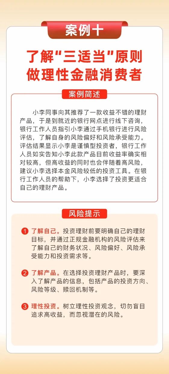 在宿迁金融监管分局指导下,市银行业协会、保险行业协会坚持以人民为中心,聚焦群众关切和金融消费者权益易受侵害领域,收集整理了金融消费者权益保护十大案例,提示防范虚假宣传、非法中介、非法金融及电信诈骗等风险,着力提升社会公众风险防范意识,携手筑牢金融消费者权益保护的“第一道防线”。