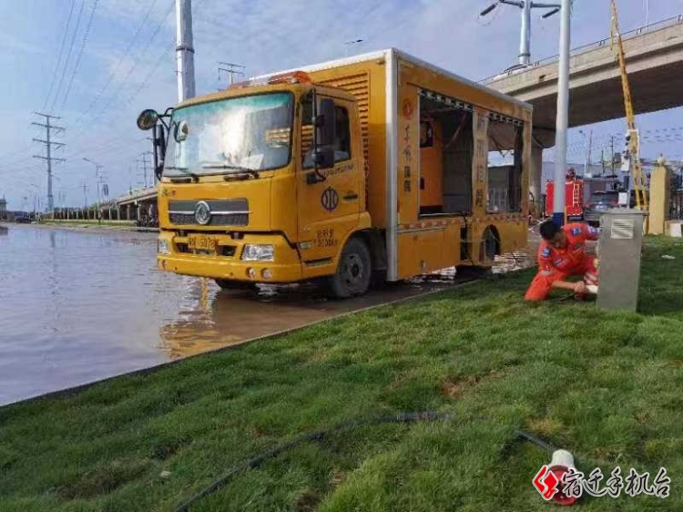 前天中午,我们接到市防指指令,要求调一辆泵车到(沭阳县)高墟镇,参加紧急排水,昨天中午,我们又接到市防指指令,我们第二批调了14台泵,两台大型发电机组(前往西圩乡)。