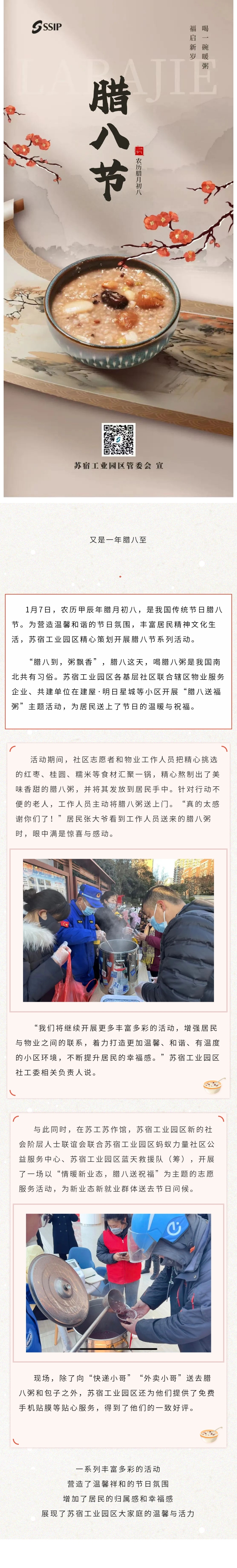 事事“粥”全!苏宿工业园区开展腊八节系列活动
