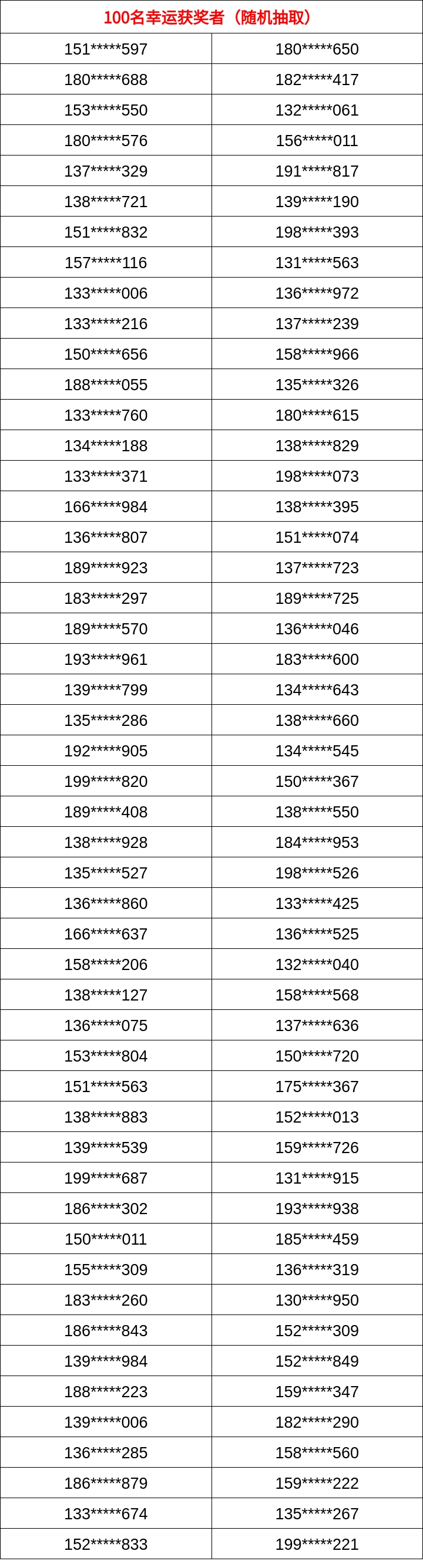 100名幸运获奖者