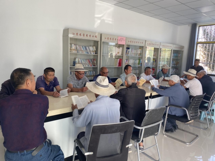 秋来读书正当时。9月21日,在沭阳县华冲镇伍滩村新时代文明实践站的农家书屋内,党员干部群众被书架上整齐有序摆放的党史资料、法律文献、农业生产技术等各类书籍吸引。大家选择自己喜欢的经典好书,或端坐或站立,尽情汲取文字营养。