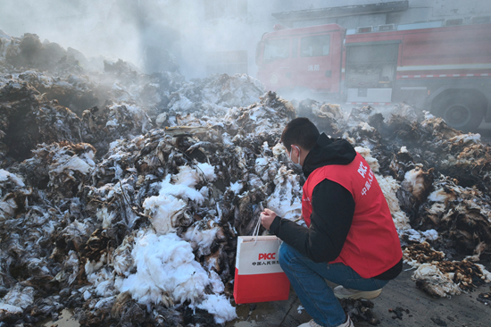人保财险宿迁市分公司理赔中心接到报案后,立即与该企业负责人取得联系,了解出险经过、施救和损失情况,提醒企业负责人除安排必要的施救外不得随意进出火灾现场,确保安全,防止人员伤亡等意外事故发生。同时,第一时间向上级公司汇报灾情。