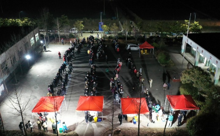 4:30接到通知,我们全力以赴组织村组干部,在6:00的时候就已经把354人基本组织到位。我们现在40分钟已经检测了109人,估计在两个小时之内,354人能全部检测完毕。