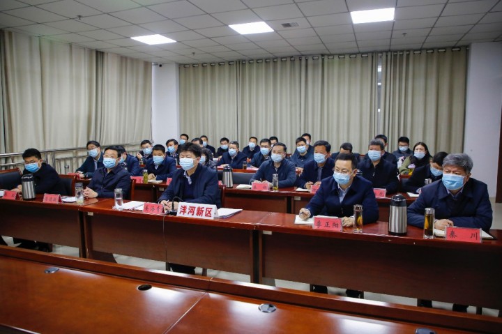 区党工委副书记、管理办公室主任姜海青及部分区(镇)领导班子成员在洋河新区分会场参加会议。