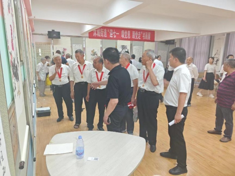 为庆祝中国共产党成立102周年,进一步弘扬伟大建党精神,引领党员干部立足岗位奉献担当,6月30日下午,沭阳县沭城街道新桥社区党委联合沭城街道文化站开展庆“迎七一,颂党恩 跟党走”书画展,向党的生日献礼,活动邀请了在党50年的老党员和居民代表40余人。