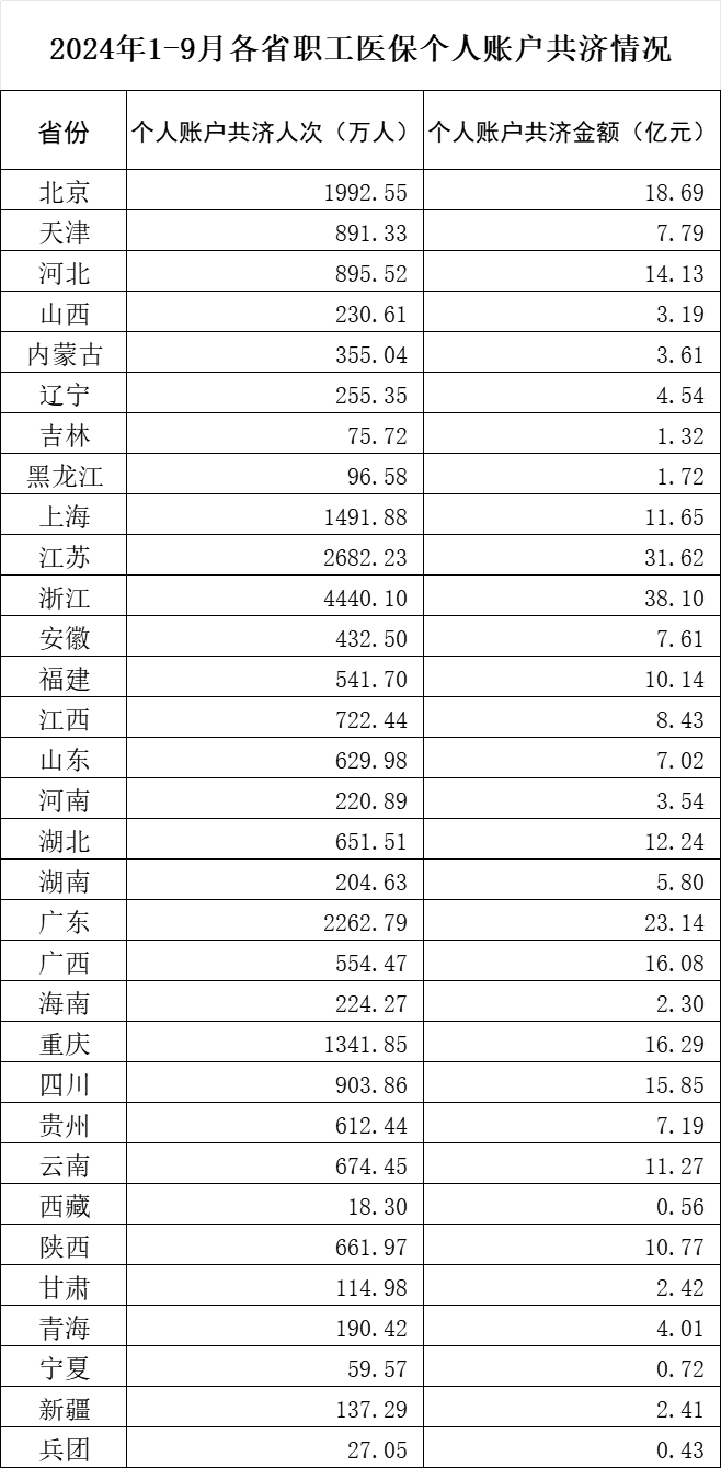 附件:2024年1-9月各省职工医保个人账户共济情况